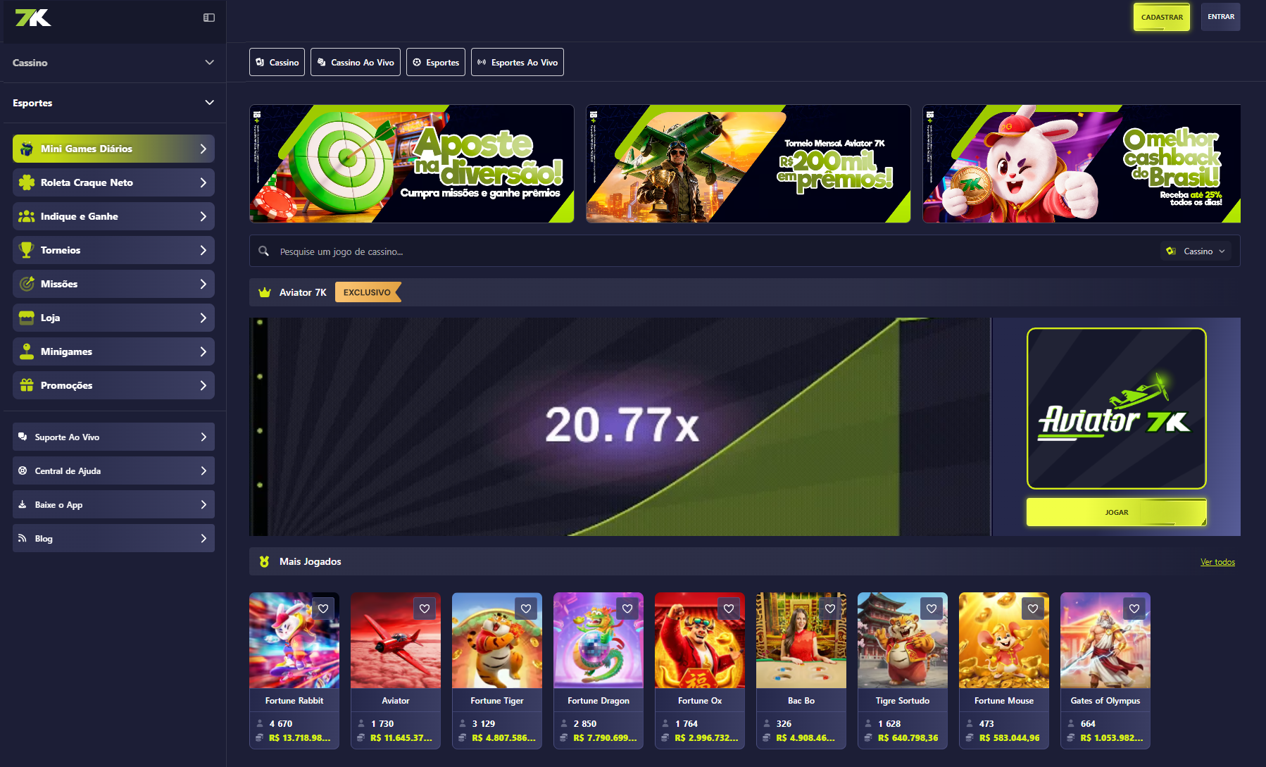 - Jogos no Bet7k — 5.000+ Títulos Incluindo Caça-Níqueis